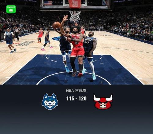 第四節(jié)森林狼蘭德?tīng)柲孟?分,公牛杰倫-史密斯拿下9分,最終森林狼115-120不敵公牛