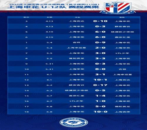 6月8日下午,2025年上海市青少年足球聯(lián)賽(男子精英U12組)末輪戰(zhàn)罷,上海申花U12隊(duì)10-0戰(zhàn)勝上海優(yōu)體。
